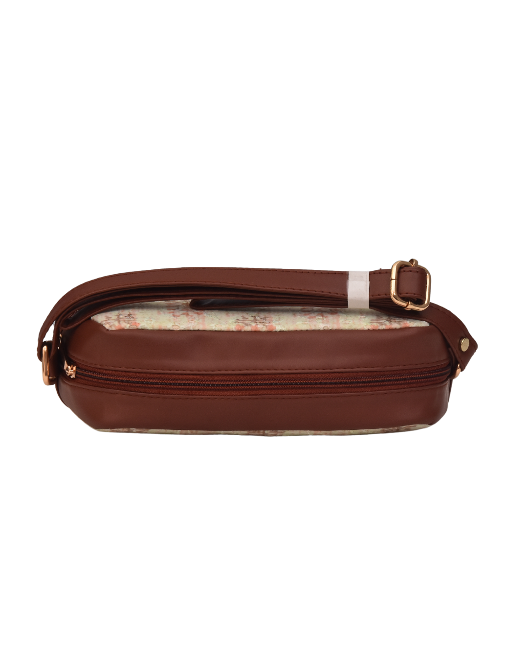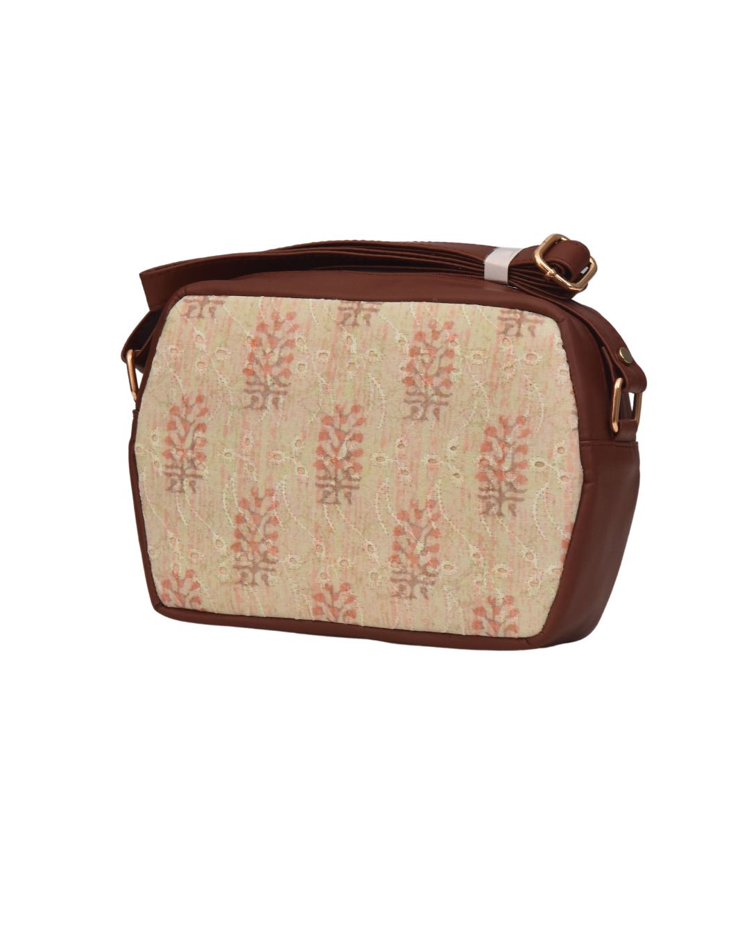 Veredeln Sie Ihren Alltagsstil mit unserer Hakoba Sling Bag – entworfen für die moderne Frau, die Eleganz und Funktionalität schätzt. Diese Tasche mit wunderschönem Blumenmuster in zarten Pfirsich- und Marinetönen ist aus hochwertigem Hakoba-Stoff gefertigt und mit robusten Lederbesätzen versehen.