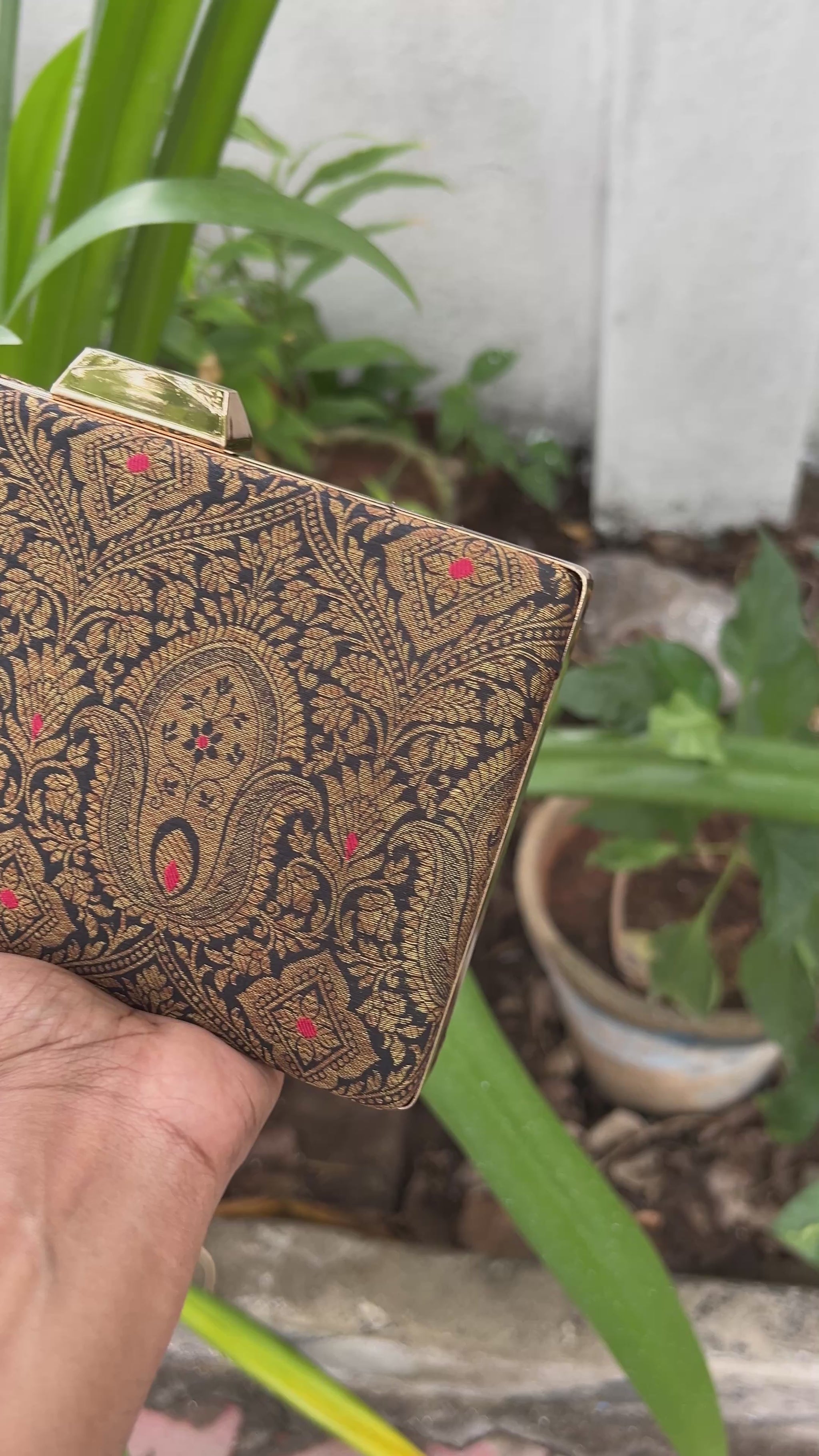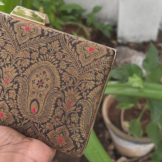 Black Banaras box Clutch , Wedding Box clutch
