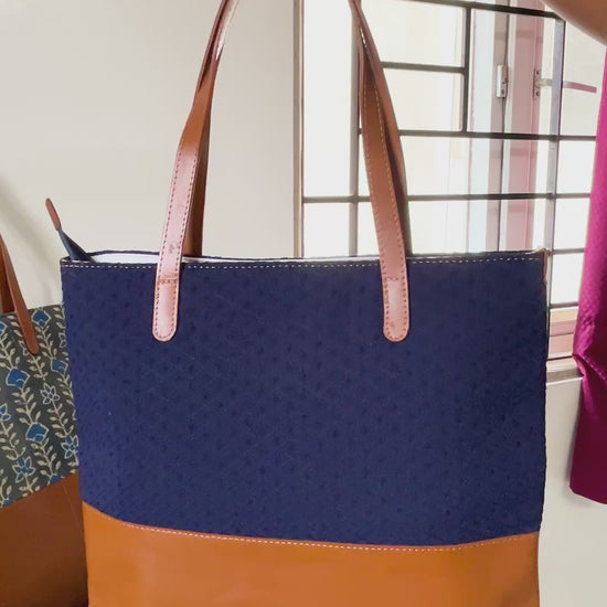 Discover the perfect blend of tradition and modern style with our Ikat tote bag. Featuring a striking black and white Ikat pattern complemented by rich brown leather accents, this tote is designed for versatility and elegance. Spacious enough for daily essentials, including a laptop, it’s ideal for work, casual outings, or weekend adventures. With its durable construction and comfortable leather handles, this bag offers both functionality and fashion, making it an essential addition to your wardrobe. Embrace the artistry of Indian handloom fabrics with a tote that celebrates timeless elegance.