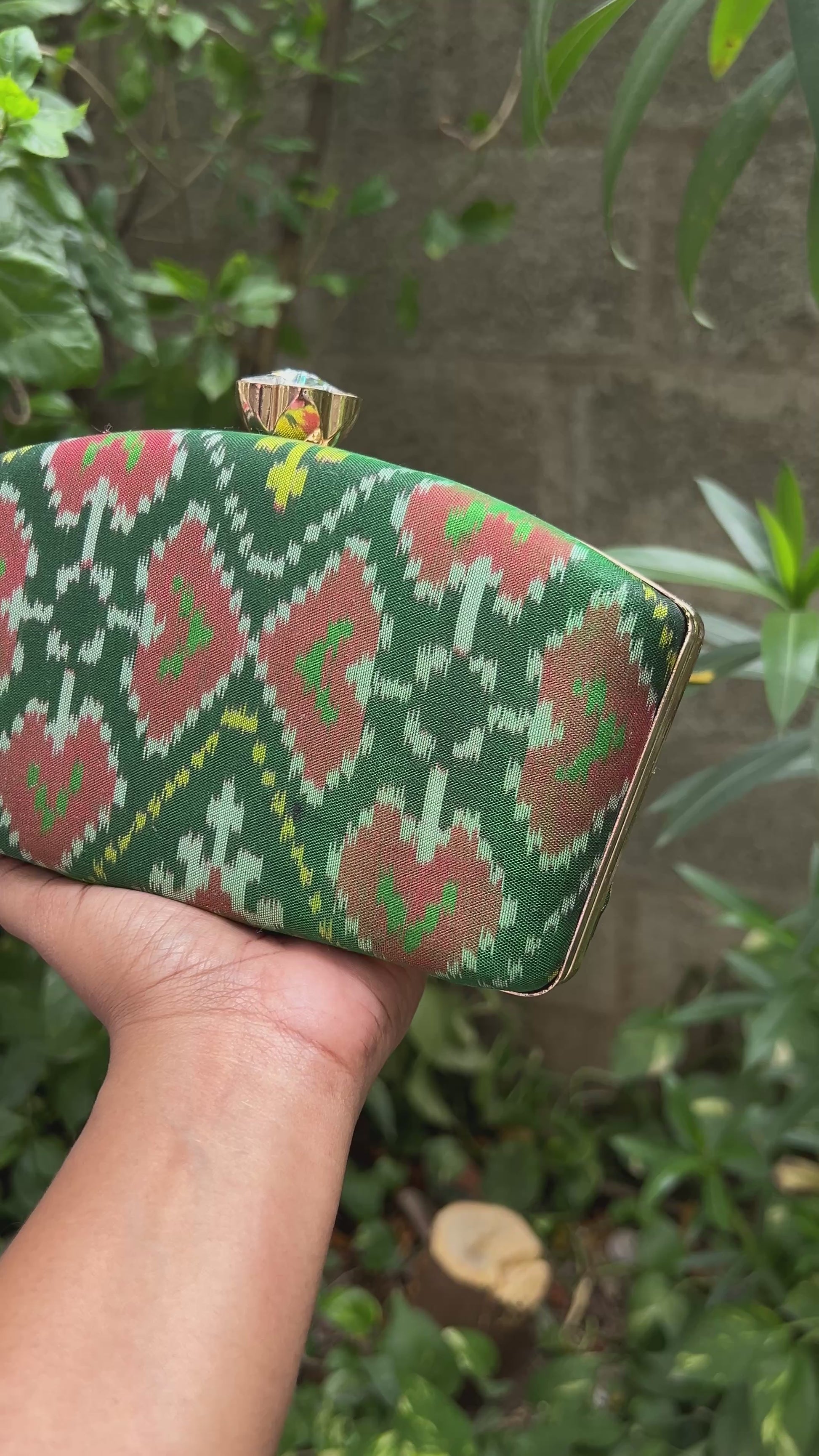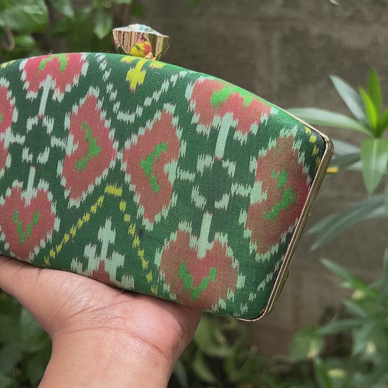 Ikat box clutch - Green